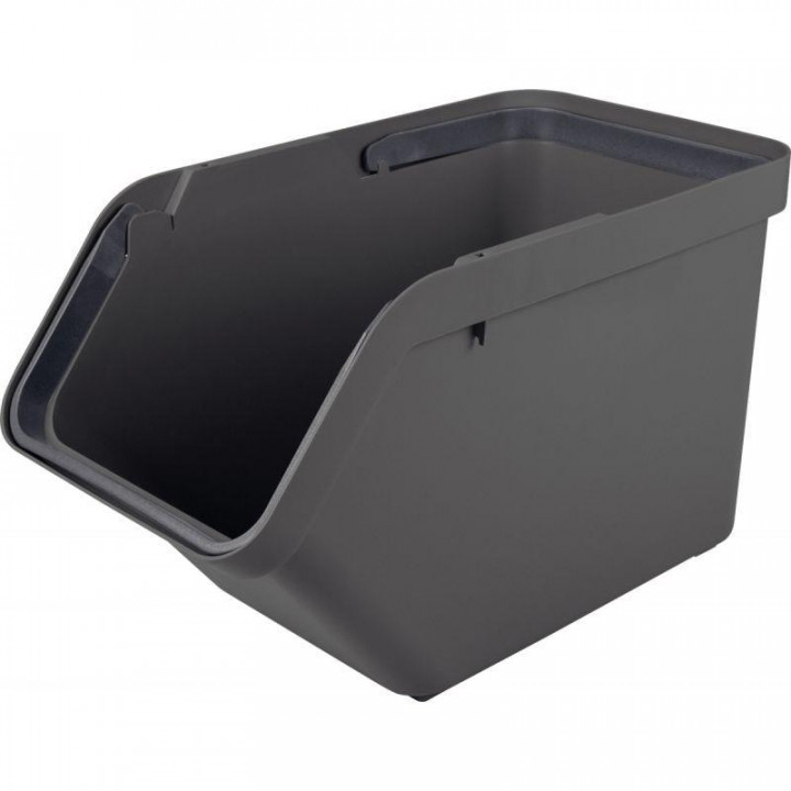 Boite de stockage 30L grise. Possède 2 poignées. Empilable avec le couvercle en option. Idéal pour le tri des déchets, de votre linge, des jouets, etc… Possibilité de fixer un sac poubelle. Dimensions : L.49,3 cm x l.27 cm x H.29,8 cm.