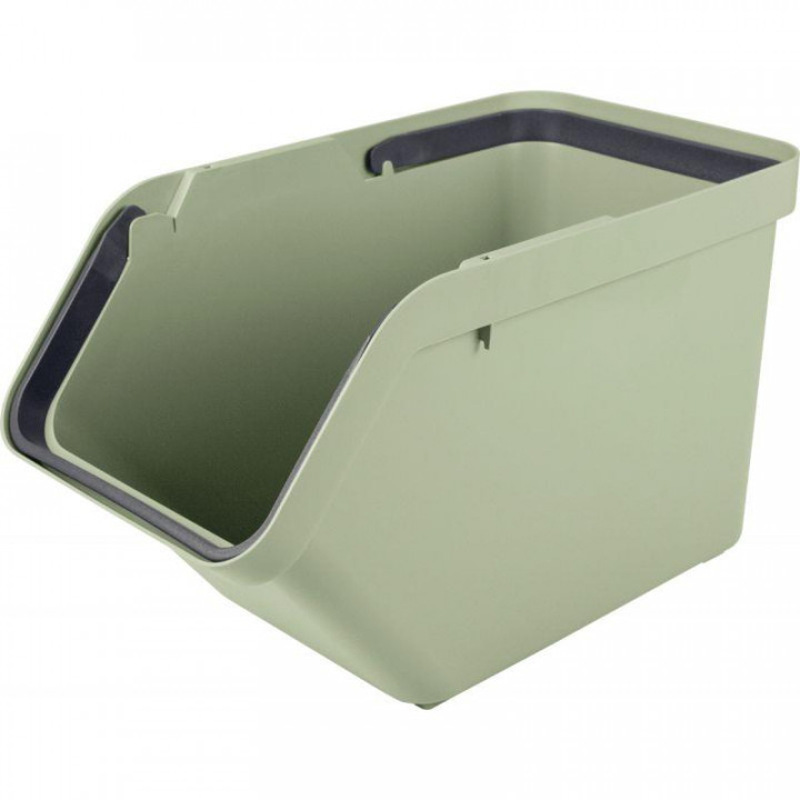 Boite de stockage 30L verte. Possède 2 poignées. Empilable avec le couvercle en option. Idéal pour le tri des déchets, de votre linge, des jouets, etc… Possibilité de fixer un sac poubelle. Dimensions : L.49,3 cm x l.27 cm x H.29,8 cm.