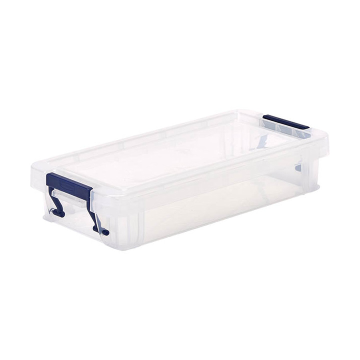 Boîte de rangement 0.75L transparente. Boîte de rangement ProStore™ Storage 0,75L Construites pour durer, ces grandes boîtes de rangement solides en plastique sont fabriquées en polypropylène résistant aux chocs et entièrement recyclable. Maximisez votre espace au sol, rangement suffisamment solide pour être empilé grâce à la double base renforcée et à ses coins. Conservez vos articles à l'abri de la poussière et de l'humidité, les pinces de fermeture à clip verrouillent solidement le couvercle en place. Idéal pour ranger les petits articles de papeterie ou de bricolage. Peut être utilisé pour organiser votre bureau, votre maison, votre garage ou votre espace de travail. Toutes les boîtes de rangement en plastique de ProStore™ sont 100% sans BPA, certifiées comme étant sans danger pour les aliments et sont entièrement recyclables (y compris l'emballage).