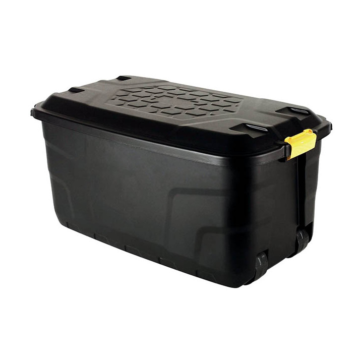 BOITE RANGEMENT + COUVERCLE AVEC TROU POUR CADENAS CHARGE LOURDE GT 145L L94xl52xH45cm + 2 ROULETTES NOIR 95% recyclé - 100% rec