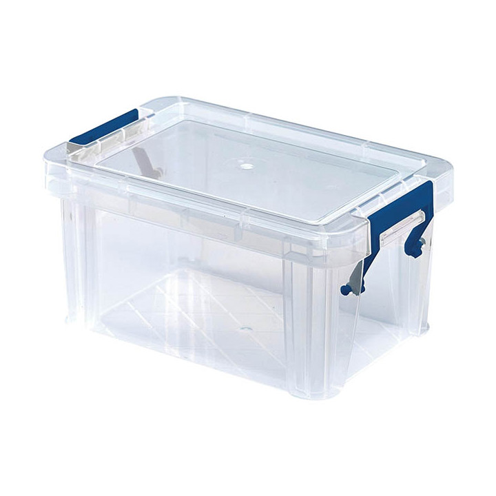 Boîte de rangement 1L transparente. Boîte de rangement ProStore™ Storage 1L Construites pour durer, ces grandes boîtes de rangement solides en plastique sont fabriquées en polypropylène résistant aux chocs et entièrement recyclable. Maximisez votre espace au sol, rangement suffisamment solide pour être empilé grâce à la double base renforcée et à ses coins. Conservez vos articles à l'abri de la poussière et de l'humidité, les pinces de fermeture à clip verrouillent solidement le couvercle en place. Idéal pour ranger les petits articles de papeterie ou de bricolage. Peut être utilisé pour organiser votre bureau, votre maison, votre garage ou votre espace de travail. Toutes les boîtes de rangement en plastique de ProStore™ sont 100% sans BPA, certifiées comme étant sans danger pour les aliments et sont entièrement recyclables (y compris l'emballage).