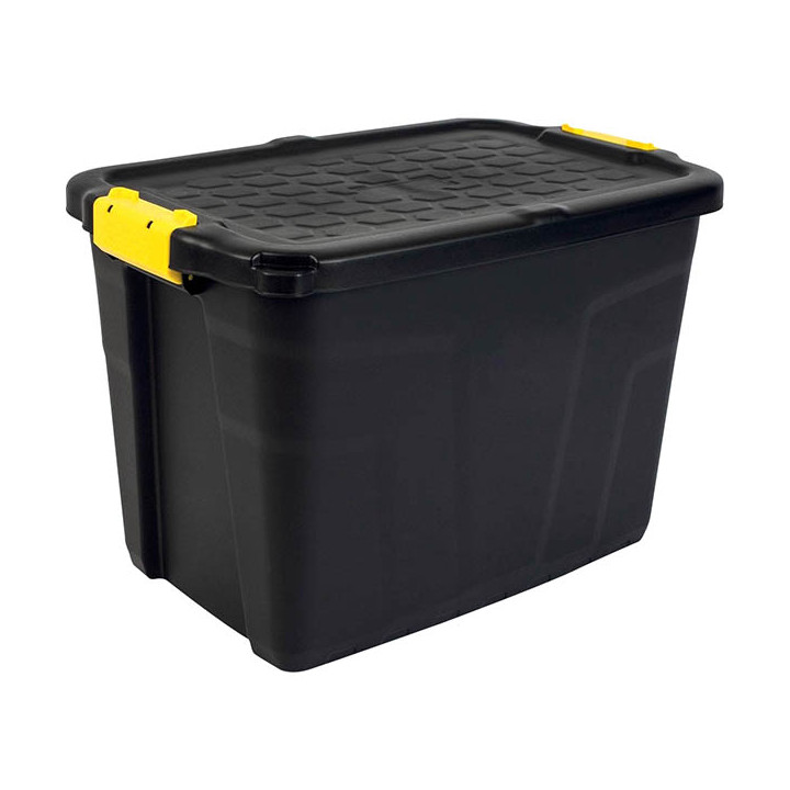 BOITE RANGEMENT + COUVERCLE AVEC TROU POUR CADENAS CHARGE LOURDE GT 60L L60xl40xH40 cm NOIR 95% recyclé - 100% recyclable AGEC B