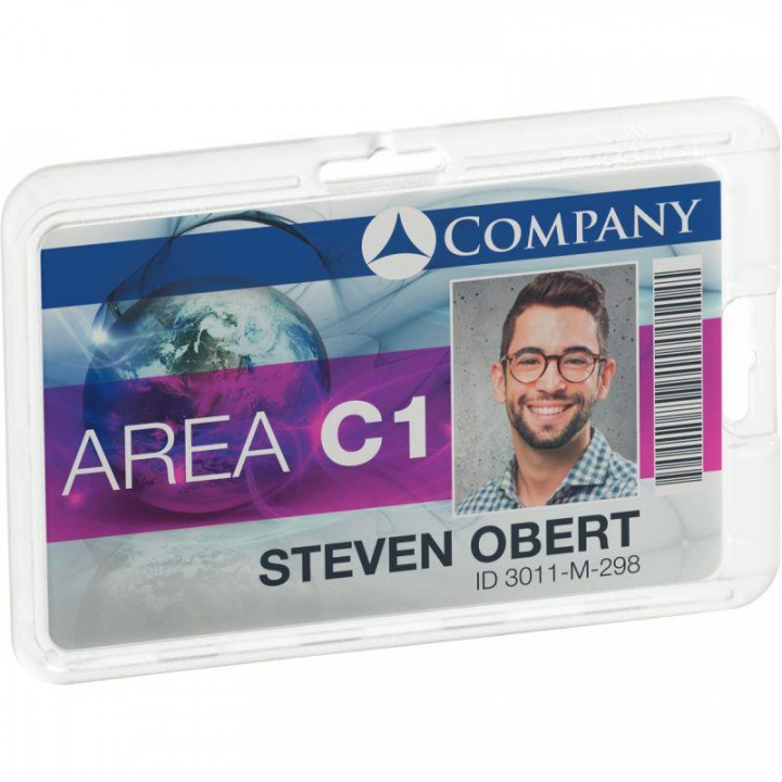 Boîte de 10 porte-carte de sécurité rigide permanent. Porte-carte fabriqué en polycarbonate résistant aux chocs. Système de verrouillage permanent de la carte. Conçu pour des zones avec un fort besoin de sécurité avec une carte qui ne peut être retiré. Ne convient pas aux cartes à puces et cartes magnétiques et peut être combiné à un lacet, un enrouleur ou une chainette. À utiliser au format portrait ou paysage. Dimension utile : 87X64 MM.