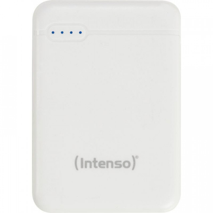 Batterie de secours Intenso XS 5000 mah blanche. Préchargée pour un usage immédiat. Batterie li-polymer. Protection contre les surcharges, décharge, court-circuit et tensions trop importantes. Connecteurs entrée micro USB 5 volts / 2,1 A Connecteurs sortie USB A 5 volts / 2,1 A Câble USB de chargement fourni Poids 103 g