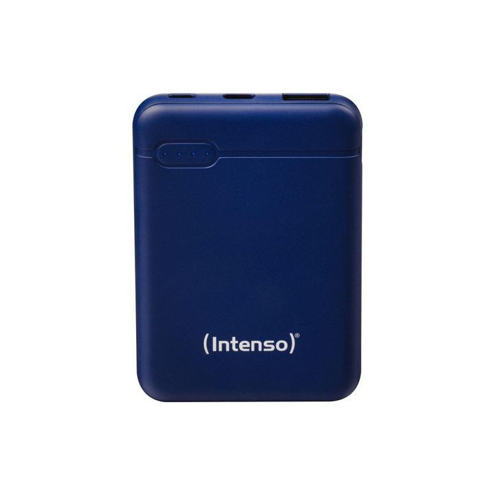 Batterie de secours Intenso XS 5000 mah bleue. Préchargée pour un usage immédiat. Batterie li-polymer. Protection contre les surcharges, décharge, court-circuit et tensions trop importantes. Connecteurs entrée micro USB 5 volts / 2,1 A Connecteurs sortie USB A 5 volts / 2,1 A Câble USB de chargement fourni Poids 103 g