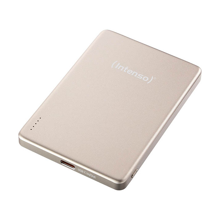 Batterie extérieur magnétique Intenso MW 5000 champagne. Les powerbanks MW5000 d'Intenso fournissent de l'énergie mobile sous sa forme la plus élégante. Dotées de batteries lithium-polymère haute performance de 5 000 mAh, elles permettent de recharger rapidement et en toute sécurité vos appareils compatibles Qi. Grâce à la technologie Power Delivery intégrée, elles fournissent une puissance allant jusqu'à 20 W via l'USB-C et jusqu'à 15 W sans fil. Parfaites pour tous ceux qui apprécient les performances solides en déplacement.