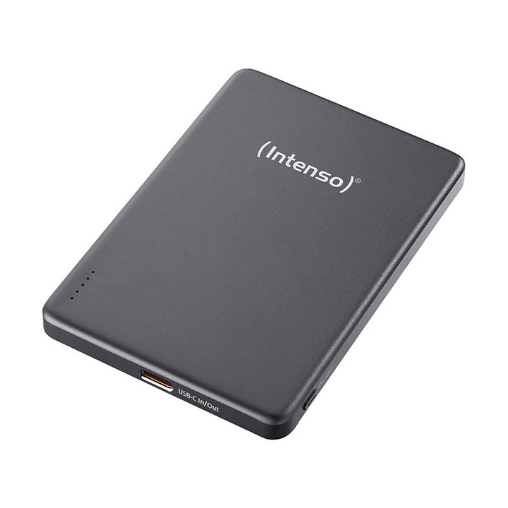 Batterie externe magnétique Intenso MW 5000 gris. Les powerbanks MW5000 d'Intenso fournissent de l'énergie mobile sous sa forme la plus élégante. Dotées de batteries lithium-polymère haute performance de 5 000 mAh, elles permettent de recharger rapidement et en toute sécurité vos appareils compatibles Qi. Grâce à la technologie Power Delivery intégrée, elles fournissent une puissance allant jusqu'à 20 W via l'USB-C et jusqu'à 15 W sans fil. Parfaites pour tous ceux qui apprécient les performances solides en déplacement.