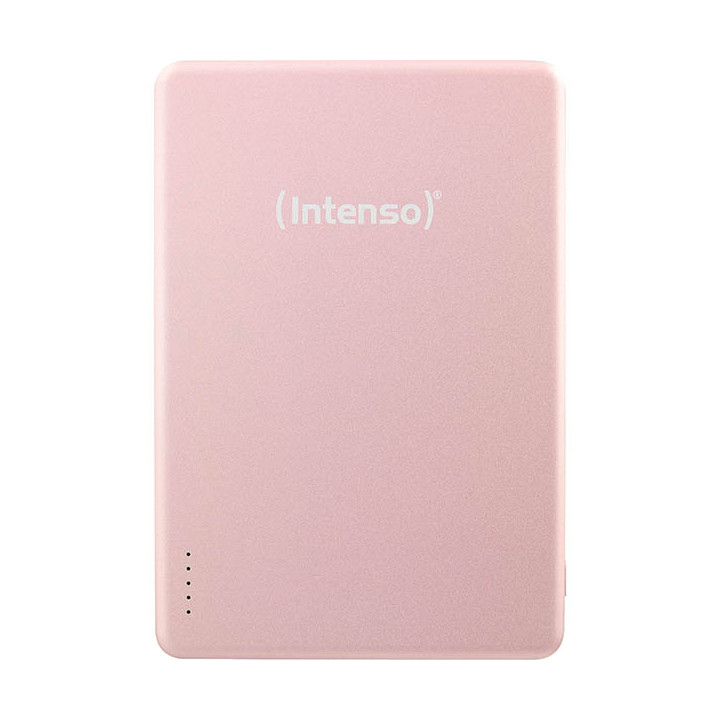 Batterie externe magnétique Intenso MW 5000 rose. Les powerbanks MW5000 d'Intenso fournissent de l'énergie mobile sous sa forme la plus élégante. Dotées de batteries lithium-polymère haute performance de 5 000 mAh, elles permettent de recharger rapidement et en toute sécurité vos appareils compatibles Qi. Grâce à la technologie Power Delivery intégrée, elles fournissent une puissance allant jusqu'à 20 W via l'USB-C et jusqu'à 15 W sans fil. Parfaites pour tous ceux qui apprécient les performances solides en déplacement.