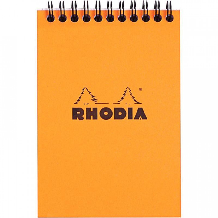 Bloc-notes à reliure intégrale RHODIA orange, format A6, 160 pages, quadrillé 5x5, papier 80g. 80 feuilles micro-perforées détachables. A6 = 10,5x14,8 cm. Papier vélin surfin blanc 80g pour un grand confort d'écriture. Socle carton ultra-rigide et couverture orange enduite.