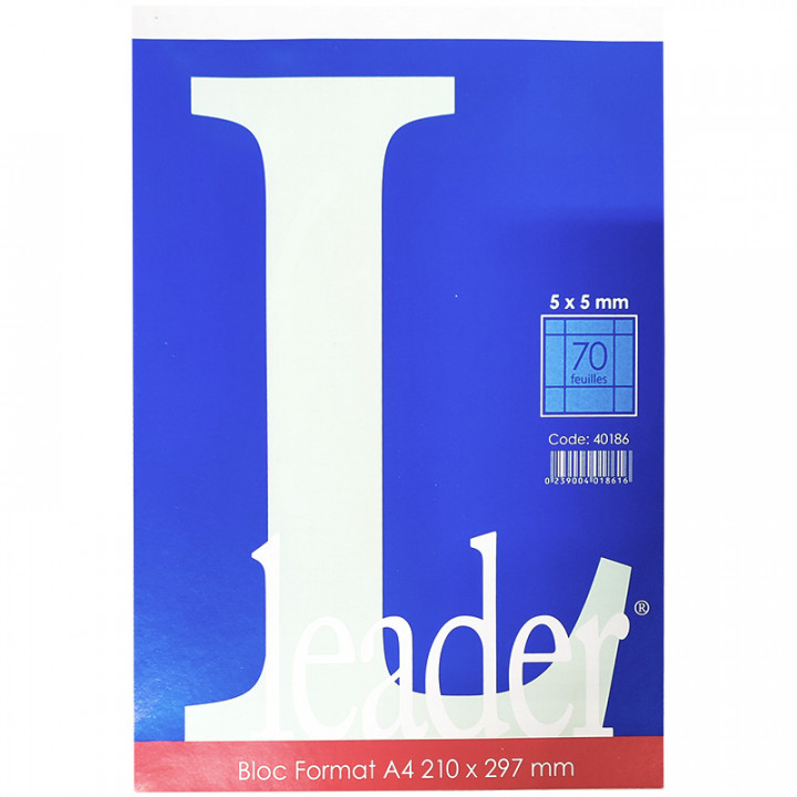 Bloc sans couverture, agrafé, 100 feuilles, quadrillé 5 x 5 mm.