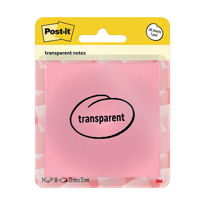 Bloc de 36 notes repositionnables transparentes 73 x 73 mm coloris papaye. Notes Post-it transparentes, 1 bloc par paquet de 36 feuilles , bleu denim délavé, 73x73mm