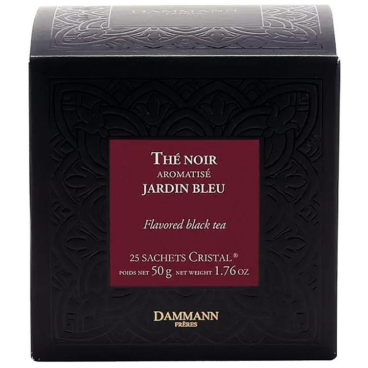Boite de 25 sachets thé noir jardin bleu DAMMANN . Apprécié pour son bel équilibre et son savoureux parfum. Délivre une liqueur veloutée à la saveur de fruits du jardin mêlant avec gourmandise, rhubarbe et fraise des bois. Parsemé de pétales de bleuet et d'hélianthe.