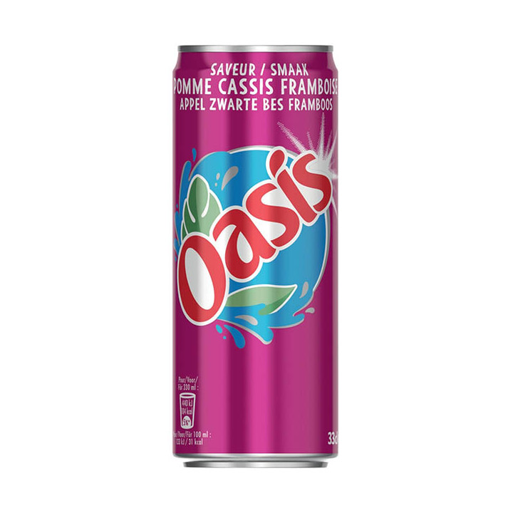 Lot de 24 canettes 33 centilitres Pomme Cassis Framboise. Boisson rafraichissante aux fruits et à l'eau de source.