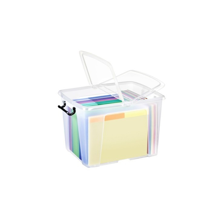 Boîte multi-rangement en polypropylène pour transporter, ranger. Couvercle papillon clipsé au centre de la boîte, s'ouvrant sur 2 côtés pour un accés facile au contenu. 2 poignées clips assurent une fermeture efficace. Superposables quand elles sont pleines et encastrables quand elles sont vides.