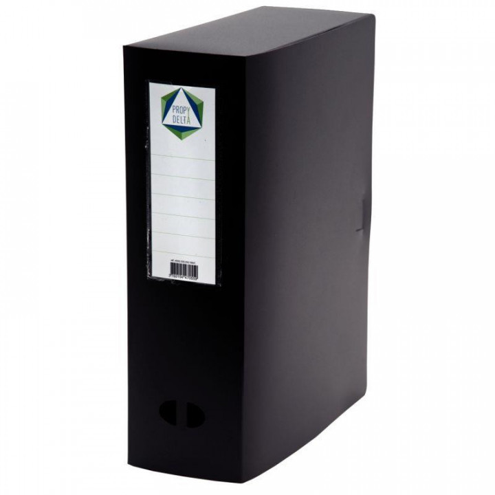 Boite de classement en polypropylène dos 10 cm, noir. En polypropylène 7/10ème recyclé à 95%. Avec porte-étiquette et étiquette de dos. Fermeture par encliquetage. Œillet de préhension. Livrée à plat. Facile à monter. Format 25 x 33 cm.