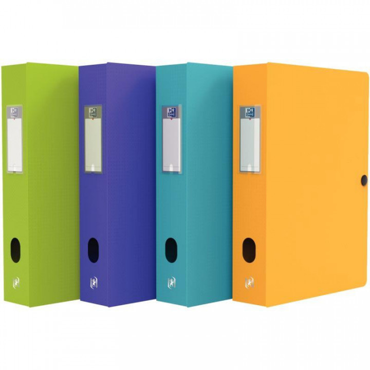 Carton de 10 boîtes de classement en polypropylène MEMPHIS dos 6 cm, coloris mode assortis. 4 coloris tendances assortis: bleu, violet, vert anis, jaune maïs. Format 25 x 33 cm. En polypropylène 7/10ème rigide et opaque. Fermeture par pression. Porte étiquette + étiquette. Oeillet de préhension. Livrée montée.
