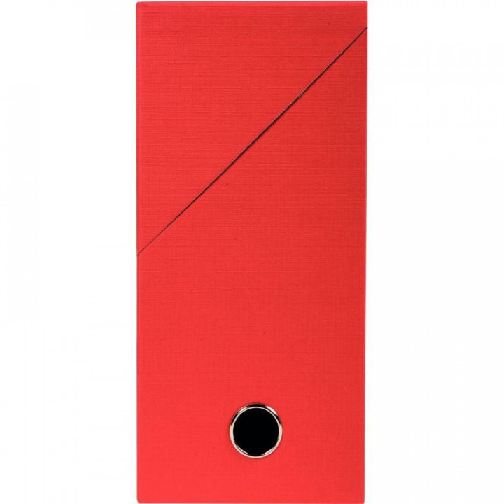 Boite de transfert papier toilé, dos 12 cm, rouge. Dimensions : L.33 x H.25 x largeur dos 12 cm. En carton rigide recouvert de papier toilé teinté. Œillet de préhension chromé. Couvercle abattant renforcé pour une plus grande solidité. Livrée montée.