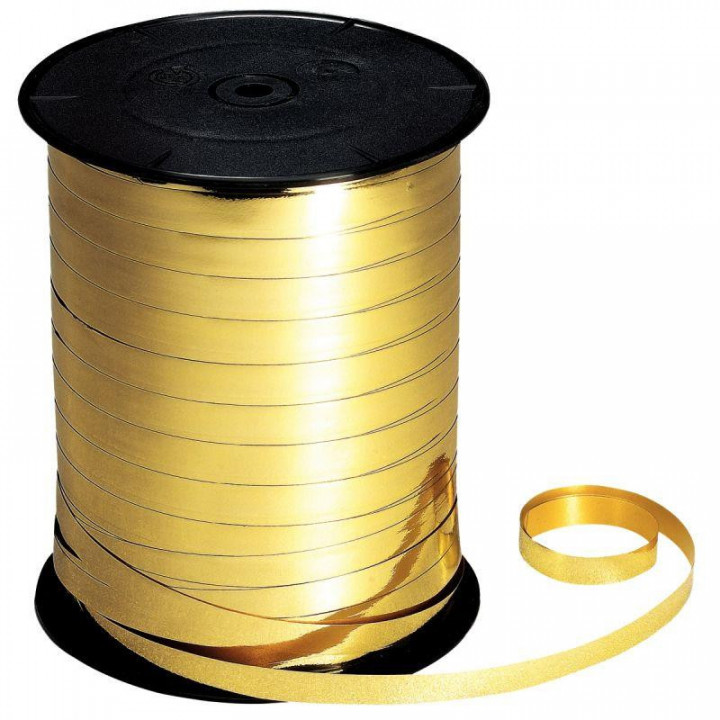 Bobine de 250m de longueur sur 7 mm de largeur de bolduc lisse coloris or métallisé.
