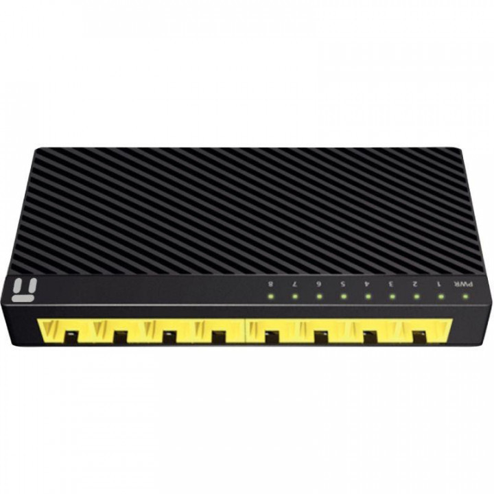 Switch réseau RJ45 8 ports gigabit. - 8 ports RJ45 10/100/1000 Plug & Play. - Vitesse de transfert Full-Duplex jusqu’à 2 000 Mbps. - Contrôle de flux automatique IEEE 802.3x, pas de perte de données pendant les transferts. - Fixation murale possible (encoche sous le boîtier). - Alimentation par adaptateur secteur 110/230 V - 5 V 800 mA. Dimensions : 84 X 59 X 20 mm. Garantie 3 ans