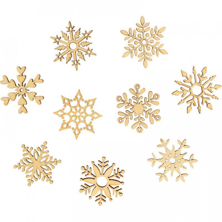 Boite de 45 mini decorations bois brut flocon. A décorer et à coller. dimensions : 3 cm