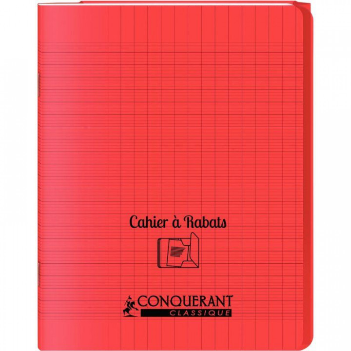 Piqûre 48 pages avec 2 rabats, format 17x22 cm, seyès 90g, couverture polypropylène rouge. Couverture en polypropylène semi-rigide. Papier blanc 90g. Cahier résistant et écologique certifié PEFC.