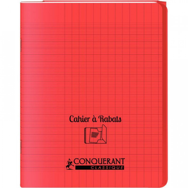 Piqûre 96 pages avec 2 rabats, format 17x22 cm, seyès 90g, couverture polypropylène rouge. Couverture en polypropylène semi-rigide. Papier blanc 90g. Cahier résistant et écologique certifié PEFC.