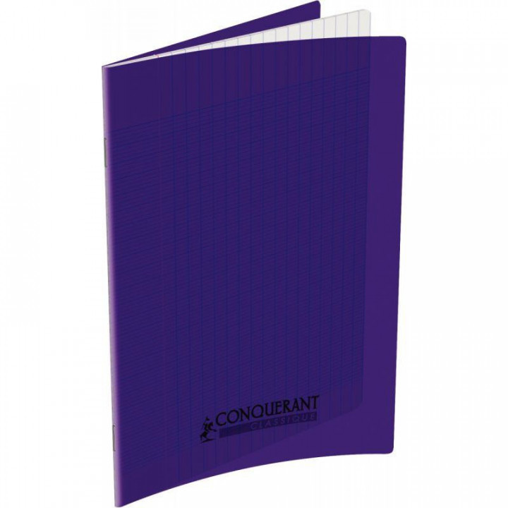 Piqûre 60 pages CONQUERANT, 17x22 cm, seyès, couv PP violet. Papier blanc 90g.