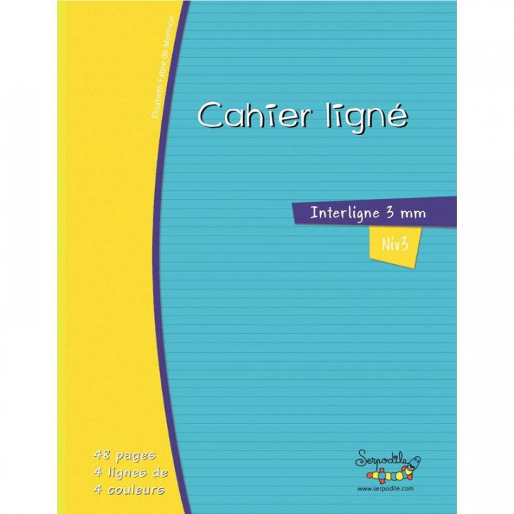 Cahier DYS format 17x22 cm, 48 pages interligne 3 mm. Piqûre. 48 pages d'écriture dont 1 double page expliquant la méthode. Papier ligné 4 couleurs 100g. Cahier adapté aux enfants dyspraxiques, dyslexiques et dysgraphiques. Cahier avec des lignes d'écriture colorées adaptées aux enfants ayant des troubles des apprentissages qui apportent des repères ludiques dans la feuille en leur apprenant à bien positionner leurs lettres. Ces lignes colorées sont aussi des aides de repérage dans l'espace. Le code couleur a été élaboré par l’équipe de l’hôpital Bicêtre et est utilisé par les ergothérapeutes.