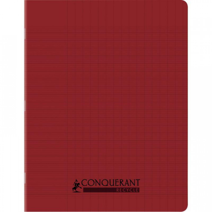 Piqûre 96 pages CONQUERANT RECYCLE format 17x22 cm, réglure seyès, couverture en polypropylène rouge. Cahier 100% recyclé et recyclable (hors agrafes) certifié PEFC : papier 90g 100% recyclé et couverture en polypropylène 28/100ème 100% recyclé. Grands carreaux seyès 2 couleurs + marge rouge. Couverture translucide et colorée, aspect grainé.
