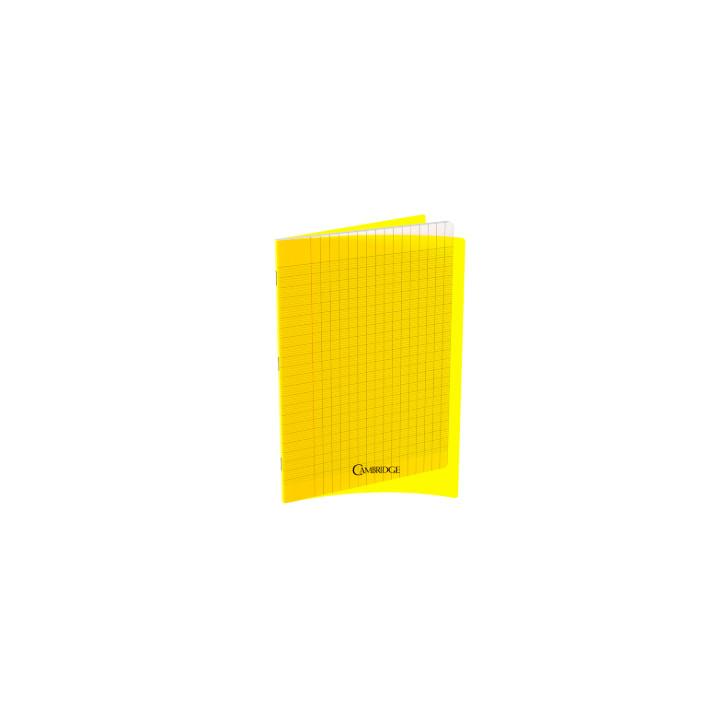Piqûre 96 pages cambridge, 17x22 cm, grands carreaux seyès, couv PP jaune. Papier blanc 80g.