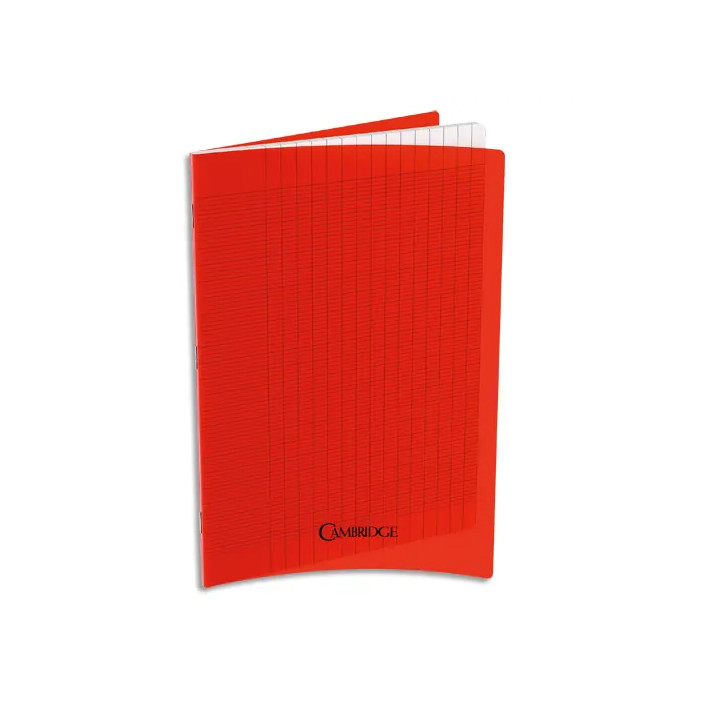 Piqûre 96 pages cambridge, 17x22 cm, grands carreaux seyès, couv PP rouge. Papier blanc 80g.