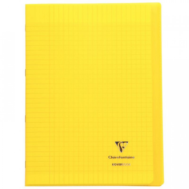 Piqûre 96 pages KOVERBOOK, format A4, seyès 90g, couverture polypropylène jaune. Le 1er cahier avec une couverture protège-cahier en polypropylène épaisse avec 2 rabats. Papier supérieur vélin velouté CLAIREFONTAINE 90g. Les rabats peuvent à la fois servir de marque-pages et de pochettes pour ranger les documents. Avec une étiquette adhésive.