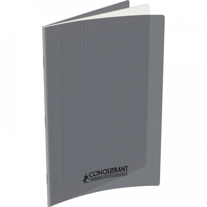 Piqûre 96 pages CONQUERANT, A4, seyès, couv PP gris. Papier blanc 90g.