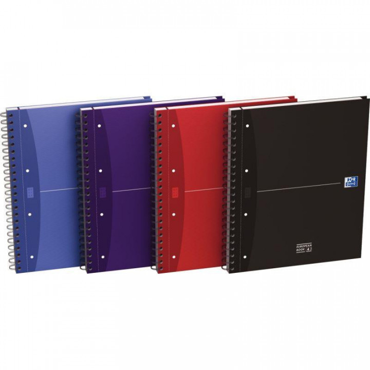 Cahier à reliure intégrale EUROPEAN BOOK format A4+, quadrillé 5x5, 240 pages perforées, coloris assortis. Papier extra blanc Optik Paper+® 80g / 90g. 240 pages perforées et détachables. 4 cahiers en 1 : 4 sections identifiées par des bordures de couleur différente pour se repérer plus facilement et organiser sa prise de notes par thème/projet. Avec 3 intercalaires amovibles en polypropylène repositionnables. Format A4+ = format A4 détaché (21 x 29,7 cm). Couverture rembordée en carte rigide pelliculée. Avec une pochette de rangement. Livraison selon coloris disponibles.
