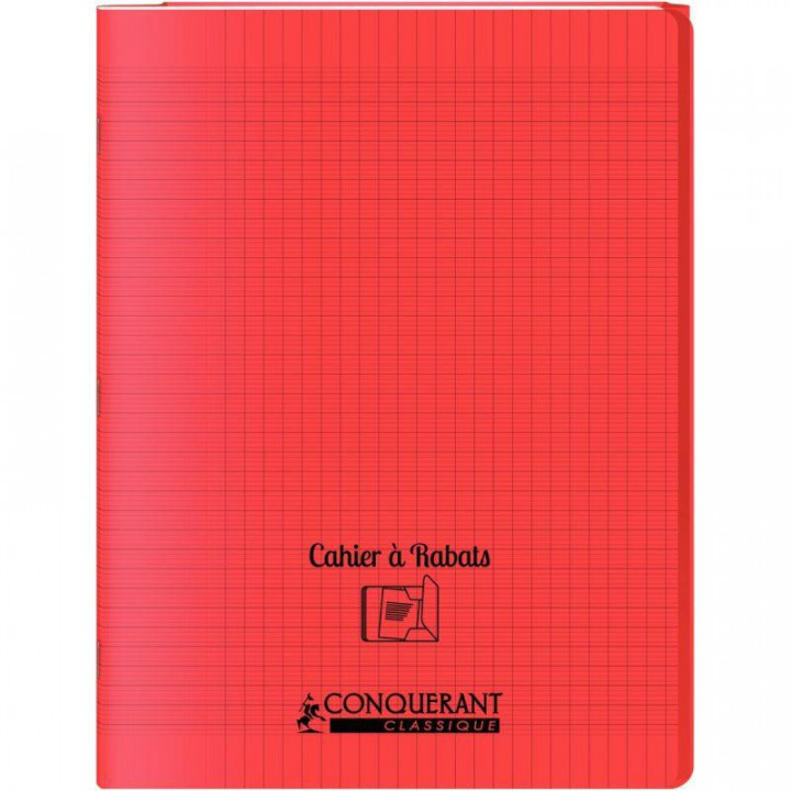 Piqûre 48 pages avec 2 rabats, format 24x32 cm, seyès 90g, couverture polypropylène rouge. Couverture en polypropylène semi-rigide. Papier blanc 90g. Cahier résistant et écologique certifié PEFC.