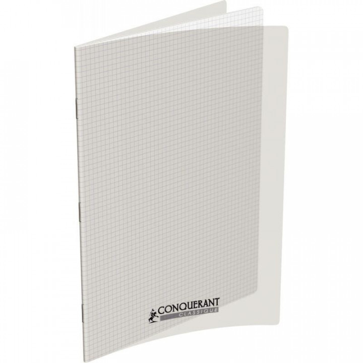 Piqûre 48 pages CONQUERANT, 24x32 cm, 5x5, couv PP incolore. Papier blanc 90g. Couverture en polypropylène translucide lisse qui rend le cahier souple et robuste.