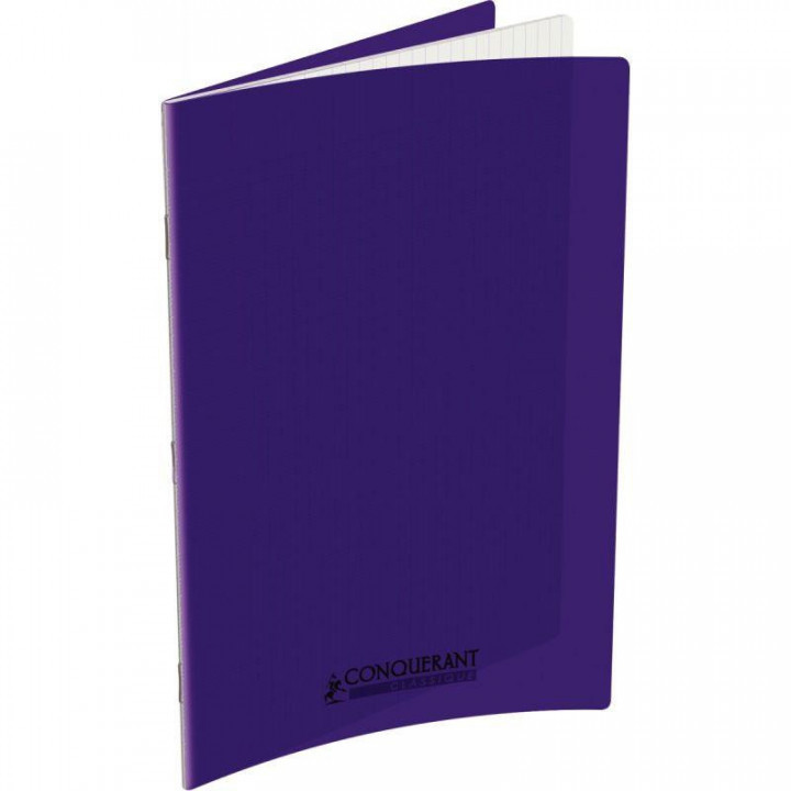 Piqûre 96 pages CONQUERANT, 24x32 cm, seyès, couv PP violet. Papier blanc 90g.