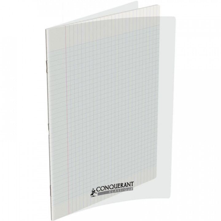 Piqûre 48 pages CONQUERANT, 24x32 cm, seyès, couv PP incolore. Papier blanc 90g. Couverture en polypropylène translucide lisse qui rend le cahier souple et robuste.