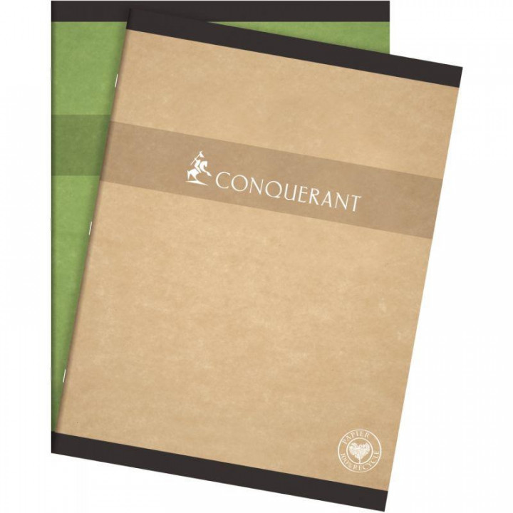 Piqûre 96 pages CONQUERANT RECYCLE, format 24x32 cm, seyès, papier 70g. Papier 100% recyclé, couverture en carte recyclée 250g. Livraison selon 2 coloris disponibles : vert et sable.