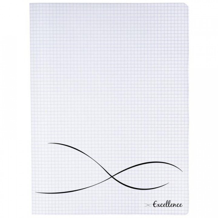 Piqûre 96 pages EXCELLENCE, format 24x32 cm, quadrillé 5x5, couverture polypropylène incolore. Couverture en polypropylène semi-rigide. Papier blanc 90g. Cahier résistant et écologique certifié PEFC.