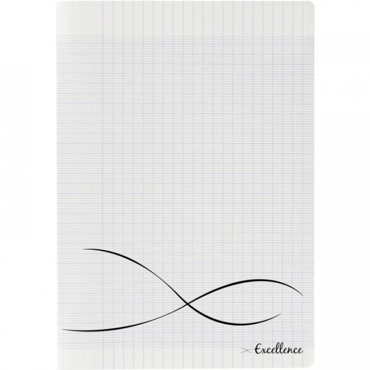 Piqûre 96 pages EXCELLENCE, format 24x32 cm, seyès, couverture polypropylène incolore. Couverture en polypropylène semi-rigide. Papier blanc 90g. Cahier résistant et écologique certifié PEFC.