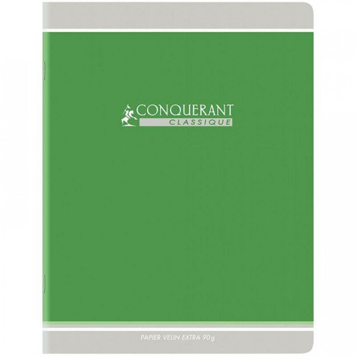 Cahier piqué 96 pages, 24x32 cm, seyès, papier 90g, vert. Couverture en carte recyclée 300g avec vernis UV, papier vélin extra 90g.