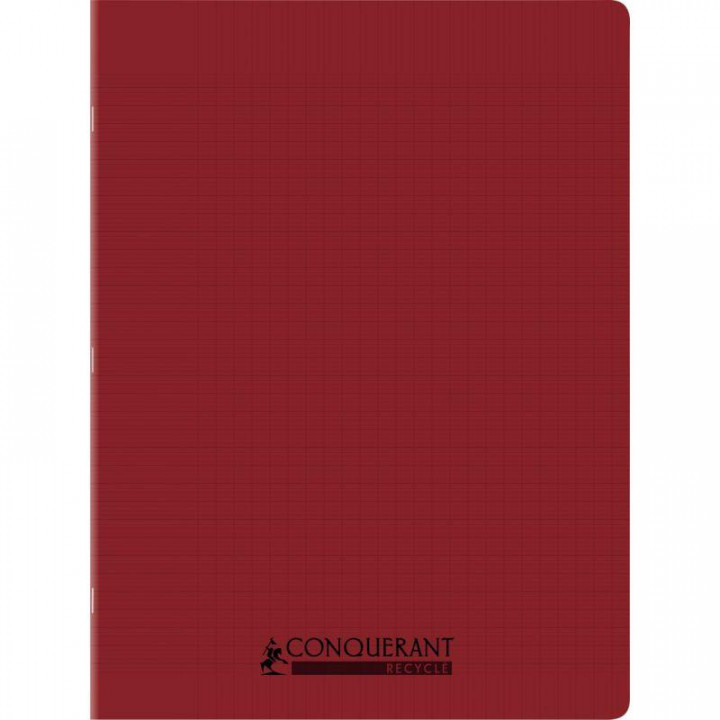Piqûre 96 pages CONQUERANT RECYCLE format 24x32 cm, réglure seyès, couverture en polypropylène rouge. Cahier 100% recyclé et recyclable (hors agrafes) certifié PEFC : papier 90g 100% recyclé et couverture en polypropylène 28/100ème 100% recyclé. Grands carreaux seyès 2 couleurs + marge rouge. Couverture translucide et colorée, aspect grainé.