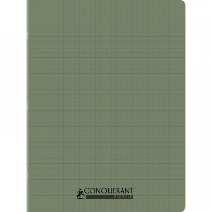 Piqûre 96 pages CONQUERANT RECYCLE format 24x32 cm, réglure seyès, couverture en polypropylène vert. Cahier 100% recyclé et recyclable (hors agrafes) certifié PEFC : papier 90g 100% recyclé et couverture en polypropylène 28/100ème 100% recyclé. Grands carreaux seyès 2 couleurs + marge rouge. Couverture translucide et colorée, aspect grainé.