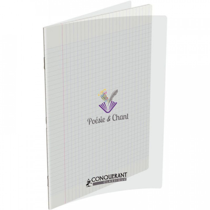Cahier de poésie 48 pages CONQUERANT, 24x32 cm, seyès/uni 90g, couv PP incolore. Cahier piqué. 1 page seyès 90g / 1 page dessin blanc uni 90g.