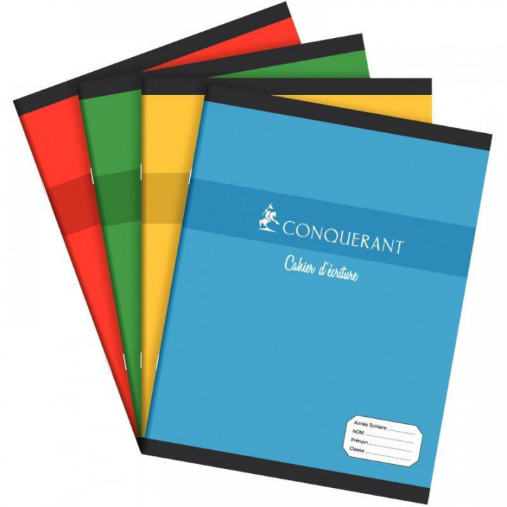 Cahier d'apprentissage piqûre 32 pages, format 17x22 cm, réglure maternelle seyès 4 mm. Couverture carte offset 170g, papier 70g. Coloris assortis.