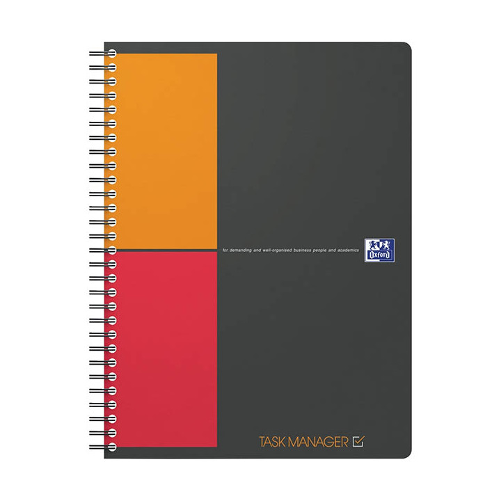 Cahier à reliure intégrale TASK MANAGER format tablette B5, 160 pages. Cahier idéal pour travailler et rester organisé partout et tout le temps, le TASK MANAGER aide à structurer les informations et à garder une vue claire et rapide sur les priorités. Une réglure spécifique "ToDoList" basée sur des symboles pour suivre l'avancement de chaque tâche (page de droite) : urgente, en cours, non traitée ou terminée. Page de gauche lignée, dédiée aux notes complémentaires en lien avec les tâches. Format compact 18,5 x 25 cm facile à transporter. 80 feuilles NON perforées, détachables grâce à la reliure mais NON microperforées. Papier extra blanc Optik Paper+® 80g / 90g. Couverture en polypropylène. Fonction SCRIBZEE : l'application qui scanne, sauvegarde et organise électroniquement vos notes dans un cloud sécurisé pour facilement les partager et les conserver.