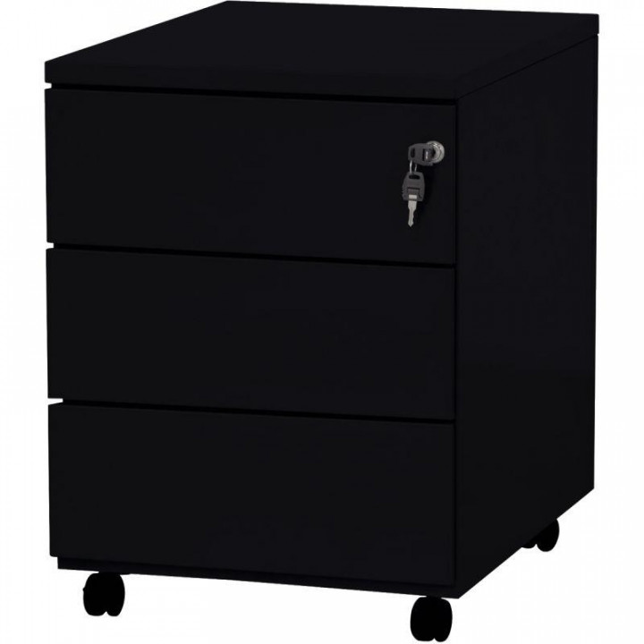 Caisson mobile professionnel en métal 3 tiroirs Noir. H56,7 cm x P54,1 cm x L41,8 cm 3 tiroirs plats. Garantie 5 ans.