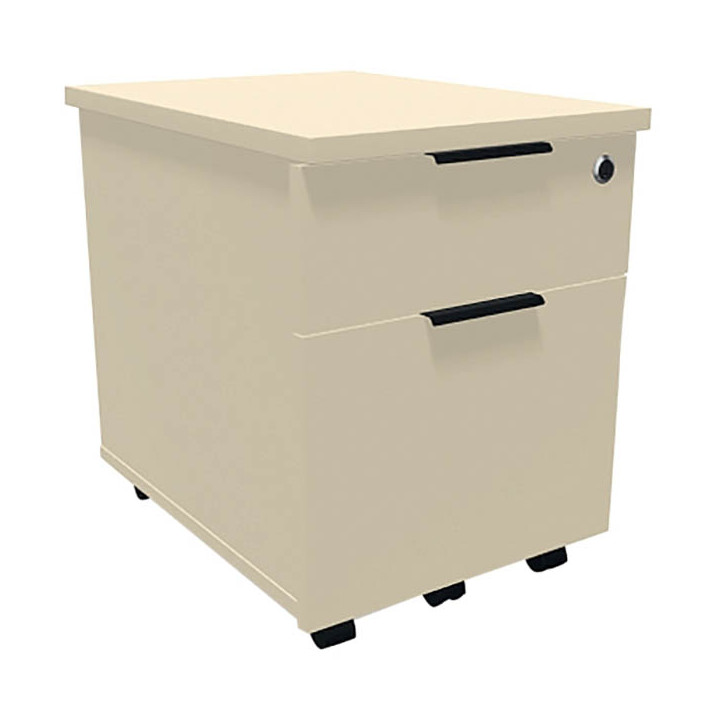 Caisson mobile mélaminé 2 tiroirs Direction plateau beige/corps beige. 2 tiroirs dont 1 pour dossiers suspendus. Plumier inclus. Garantie 8 ans.