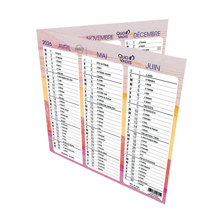 Calendrier origami iconique 36x18cm. Calendrier pliant 36x18cm (format plié : 18x18cm) A poser sur son bureau 3 mois par face
